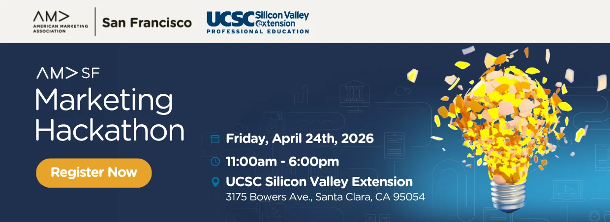 With hands-on learning, resource access, expert feedback, and meaningful impact at its core, the AMA SF Hackathon is the ultimate platform to grow your skills, expand your network, and drive marketing innovation that matters.
